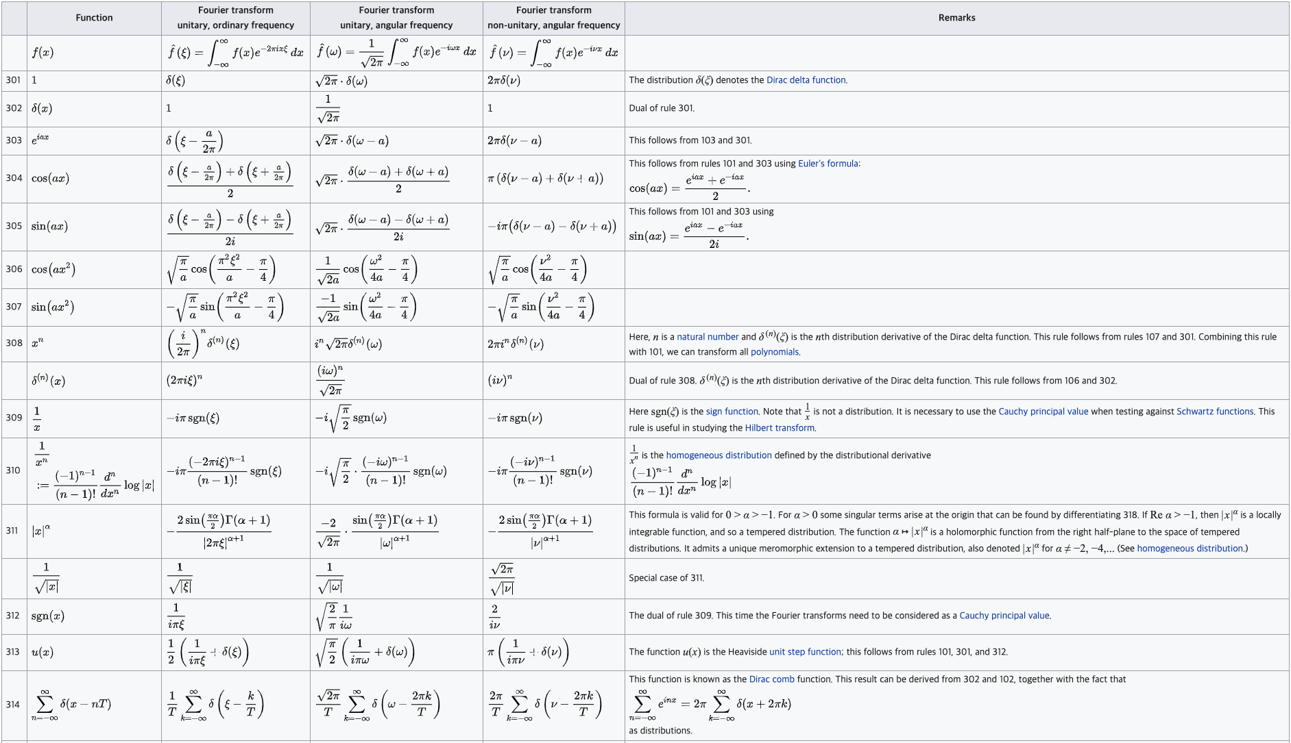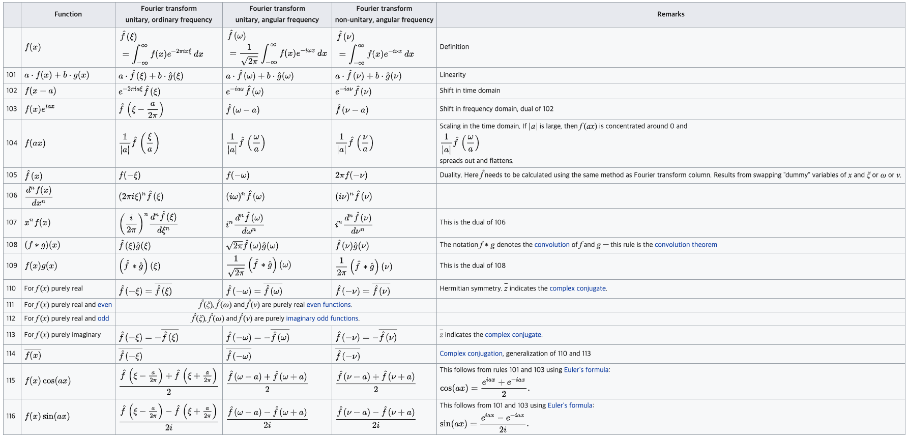 위 사진들은 푸리에 변환에서 자주 사용되는 공식들이다.