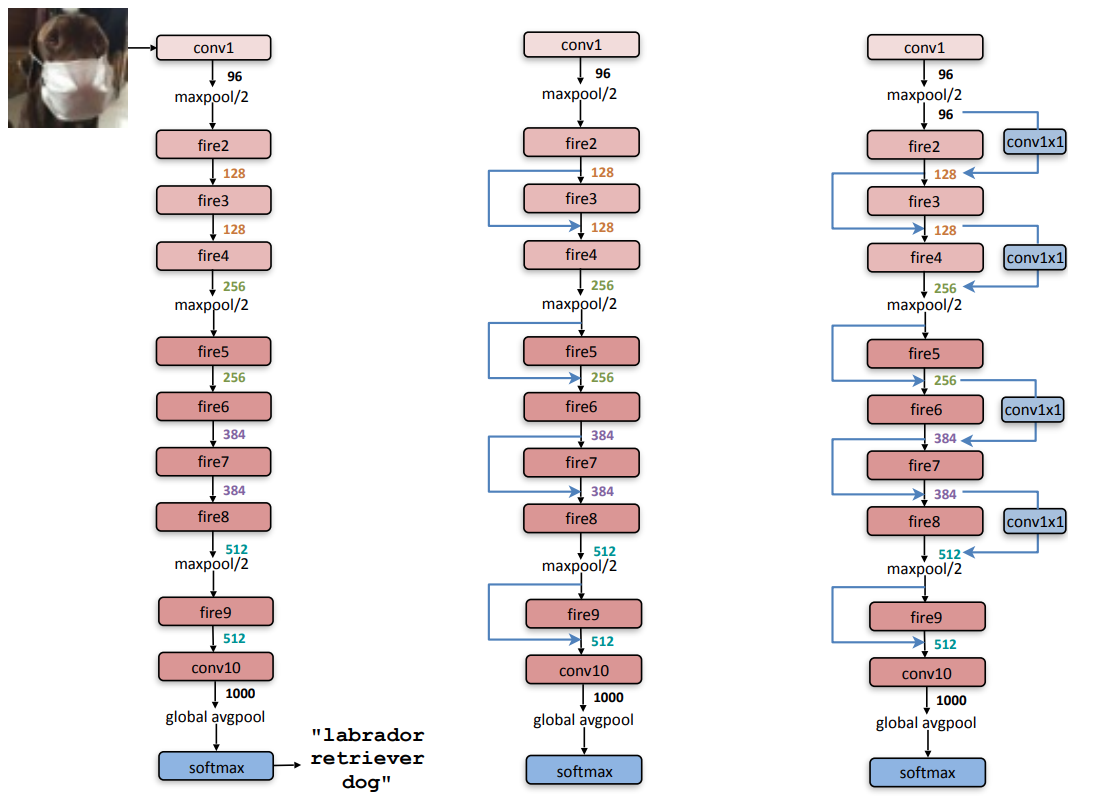 (SqueezeNet: AlexNet-level accuracy with 50x fewer parameters and <0.5MB model size, Forrest N. Iandola, Song Han 외 4인 저, CVPR arXiv:1602.07360)