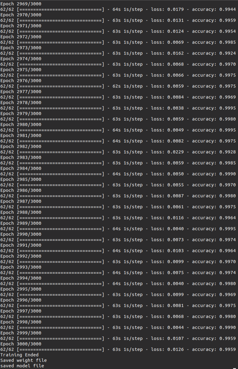 만약 중간중간의 weight를 .h5 파일로 남겨 흔적을 분석해야 한다면 주석을 해제한 후, line 134 ~ 146까지의 주석까지 해제하면 된다.