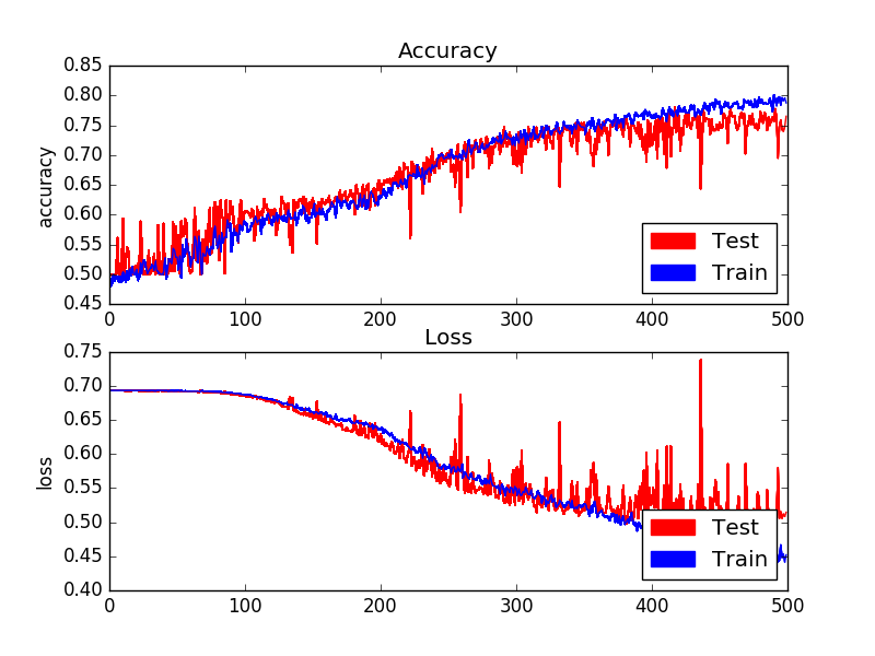 위 그래프에서 우리는 validation 사진 500개를 거치며 accuracy가 80%에 육박하게 되는 것을 알 수 있다.