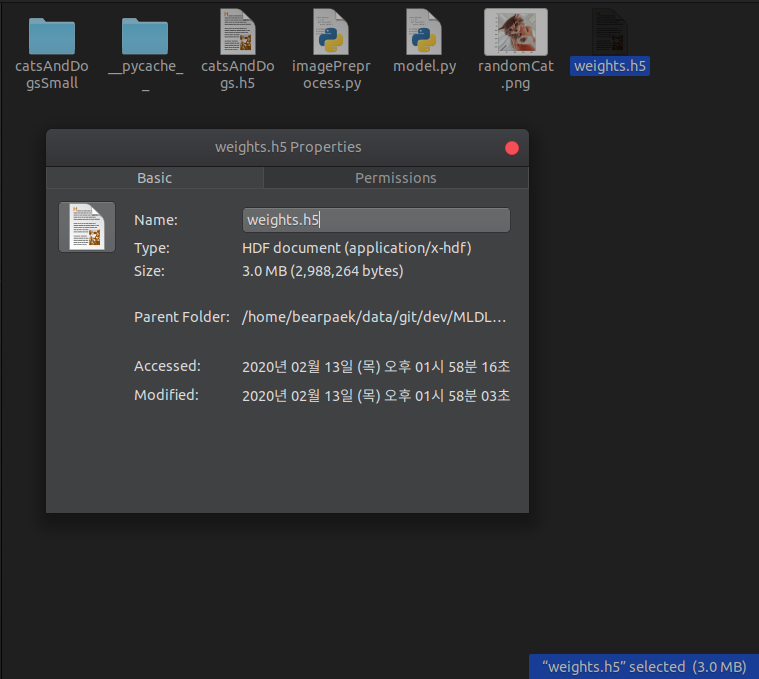 맨 위에서 예고되었듯, weight.h5 파일은 무려 3.0MB밖에 하지 않는다.