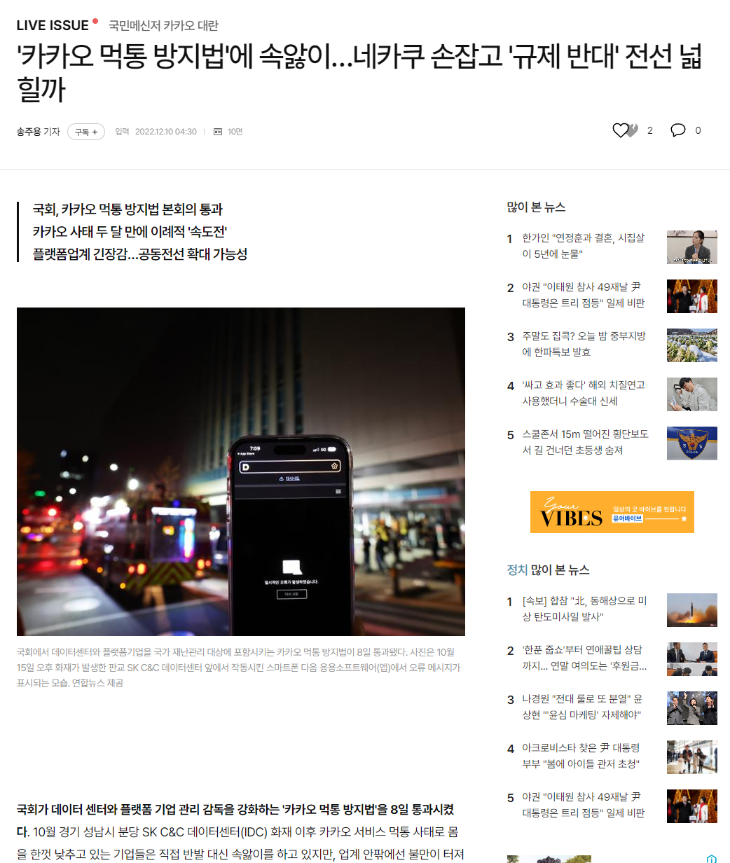 이 규제는 비단 카카오 뿐만이 아니라, 네이버, 카카오, 쿠팡 등 플랫폼 사업들을 모조리 규제하는 법이었다.