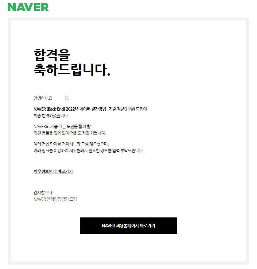 네이버 최종합격 인증 및 서류전형은 아래 글 참고