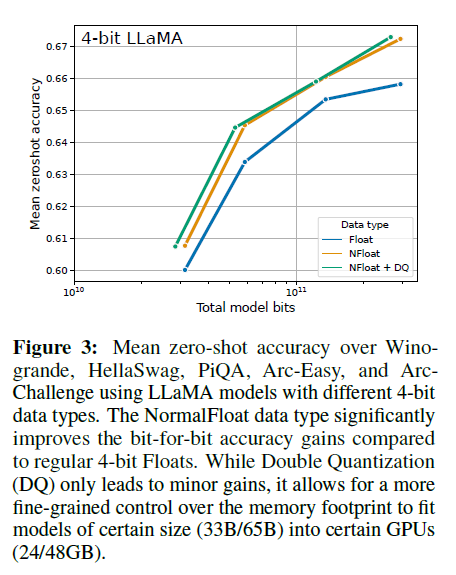 - 4비트 NormalFloat: 정규 분포 데이터에 대한 최적의 양자화 데이터 유형으로, 4비트 정수 및 4비트 부동 소수점보다 경험적으로 더 우수합니다.