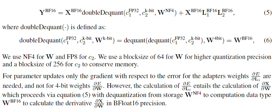 - 논문은 양자화된 기본 모델에서 단일 선형 계층과 단일 LoRA 어댑터에 대한 QLoRA의 공식 정의를 제공합니다.