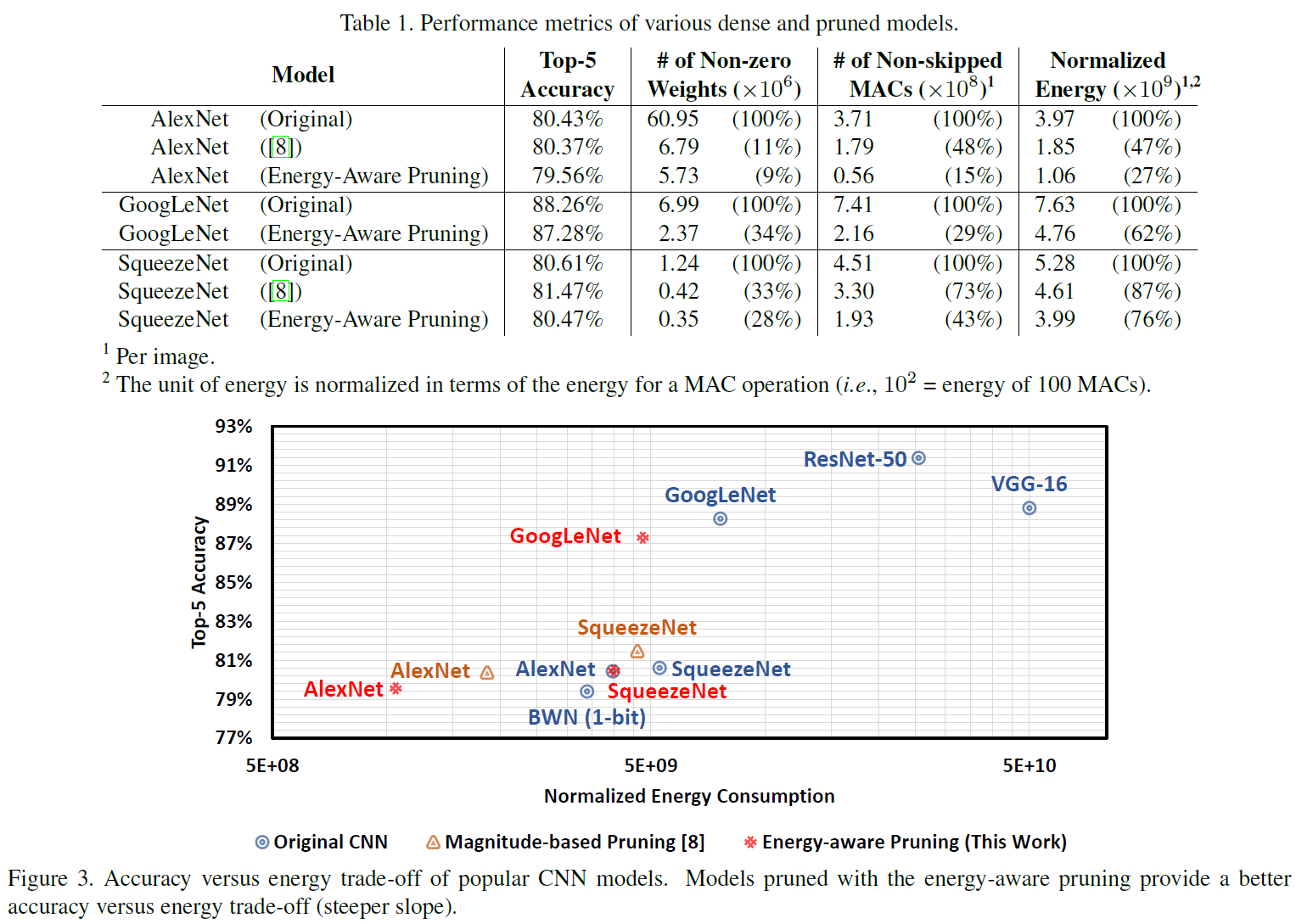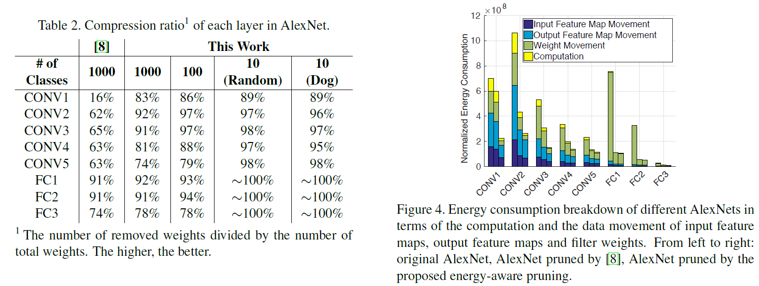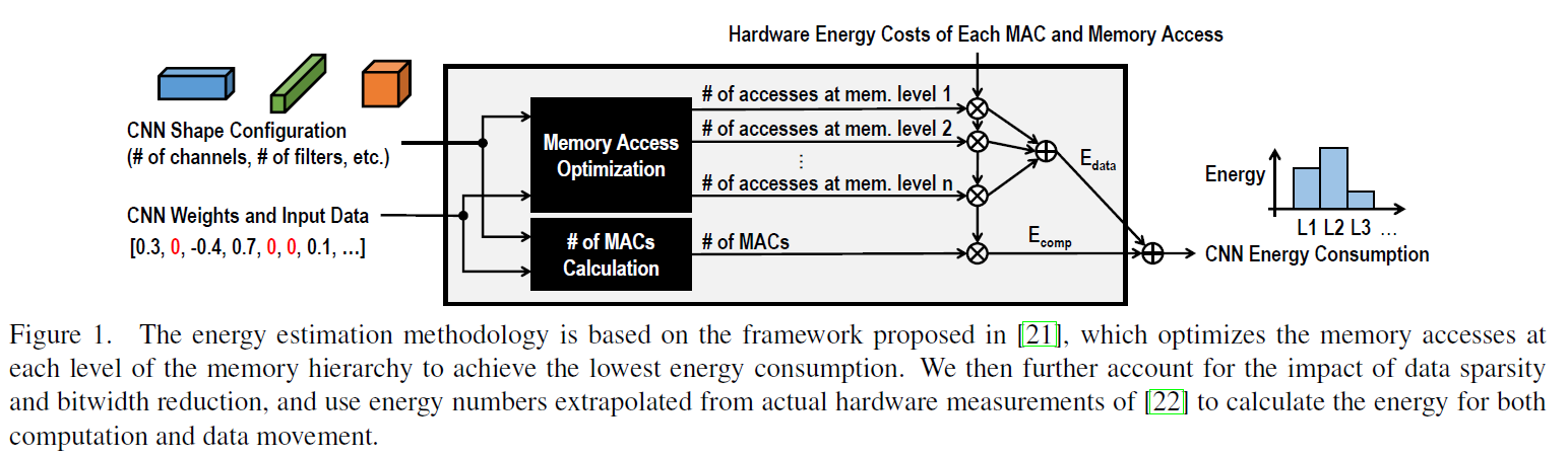 - 에너지 추정 방법론: 가중치 수나 연산 수는 에너지 효율성을 향상시키기 위한 CNN 설계를 안내하는 좋은 지표가 아닙니다. 따라서 CNN의 에너지 소비를 직접 사용하여 설계를 안내합니다.