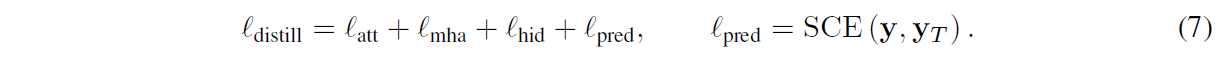 - 그런 다음 prediction-layer distillation Loss는 교사 Logits yT와 학생 Logits y 사이의 Soft Cross-Entropy (SCE)를 최소화함으로써 수행됩니다. 목표 함수는 다음과 같이 표현됩니다: