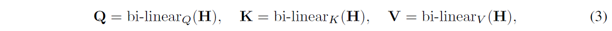 - 여기에서 bi-linearQ, bi-linearK, bi-linearV는 각각 Q, K, V에 대한 세 가지 다른 이진화 선형 계층을 나타냅니다.